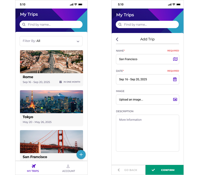 My Trips is a web application designed to help users effortlessly plan upcoming travel.
