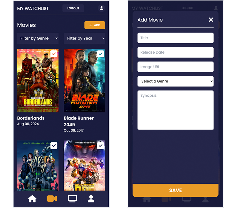 My Watchlist is a web application that allows users to create and manage a personalized list of movies and series they want to watch.