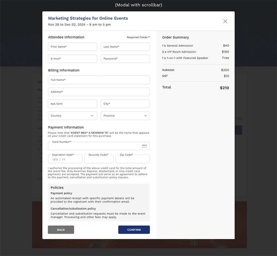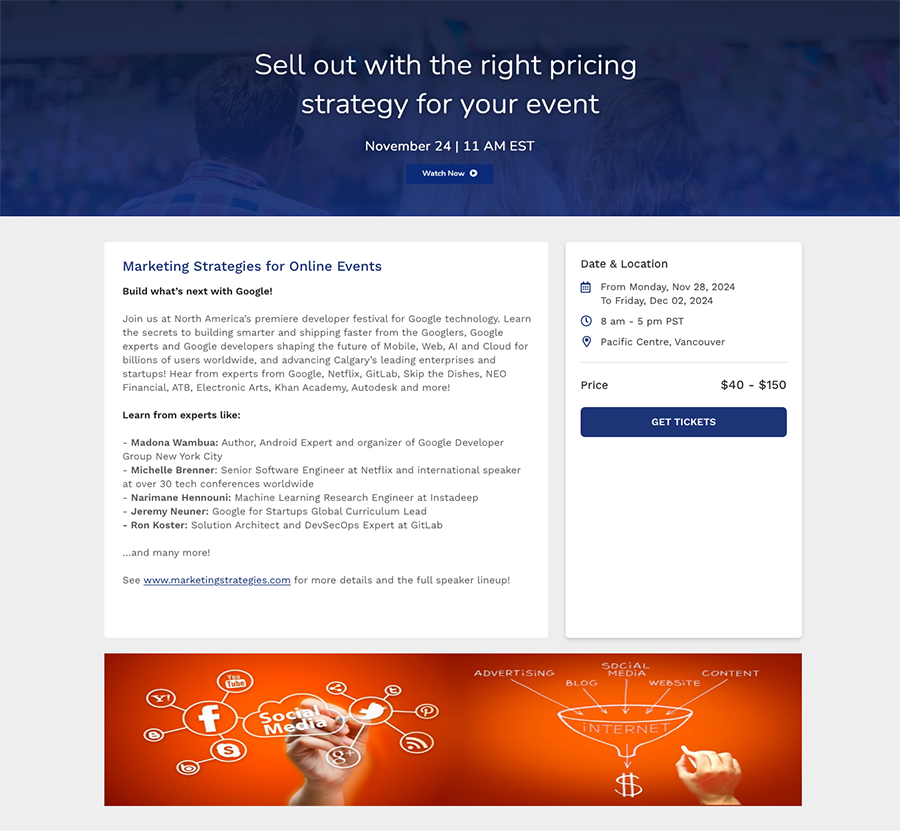 The event management platform streamlines the checkout experience for users while offering powerful configuration tools for event organizers.